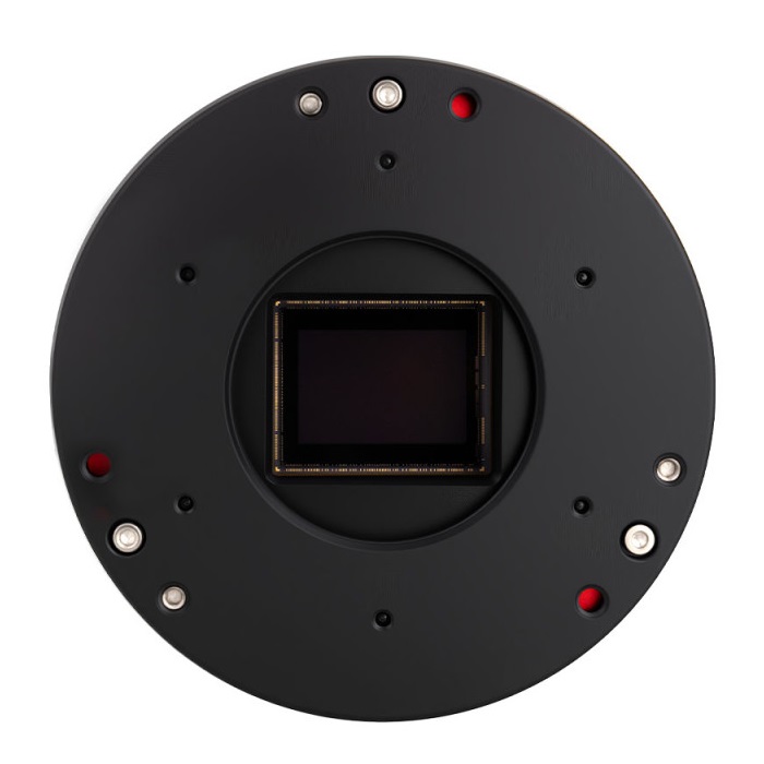 The camera incorporates a tilt plate with three sets of adjustment screws. In combination with the three mounting screws, they enable precise fine-tuning of the sensor plane for accurate alignment with the telescope’s optical axis, ensuring a flat imaging field and consistent star shapes across the entire frame.