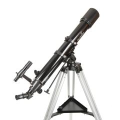 90/900 SkyWatcher Evostar-90 refraktor AZ3 mechanikán, Starpointerrel, 10mm (90x) és 25mm (36x) Ba okulárok, 90 fokos Amici-prizma