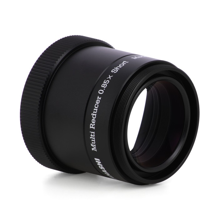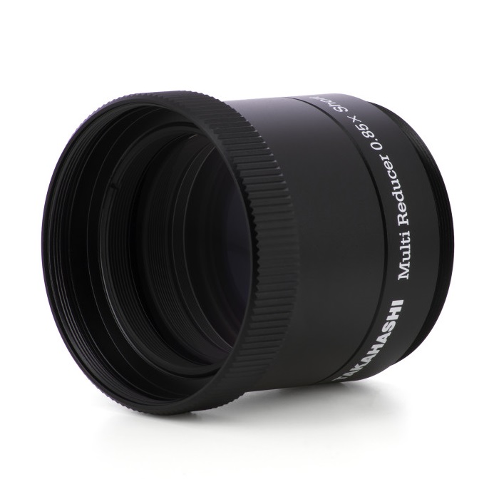Analog zum Multi-Flattener hat Takahashi einen ähnlich universell einsetzbaren Reducer entwickelt, geeignet für Refraktoren bis 600mm Brennweite. Er ersetzt die bisherigen Reducer der Geräte FS-60C und FC-76D, der auf den ersten Blick etwas geringere Verkürzungsfaktor wird mit kompromissloser Vollformat-Tauglichkeit mehr als kompensiert, die alten Reducer waren nur bis APS-C kompatibel. Die Entwicklung immer hochauflösenderer Sensoren fordert die Verwendung gut korrigierter Optiken mit feiner Sternabbildung über einen großen Bereich, dies wird hier mit einer sehr aufwendigen Konstruktion aus 4 Linsen in 3 Gruppen erreicht.